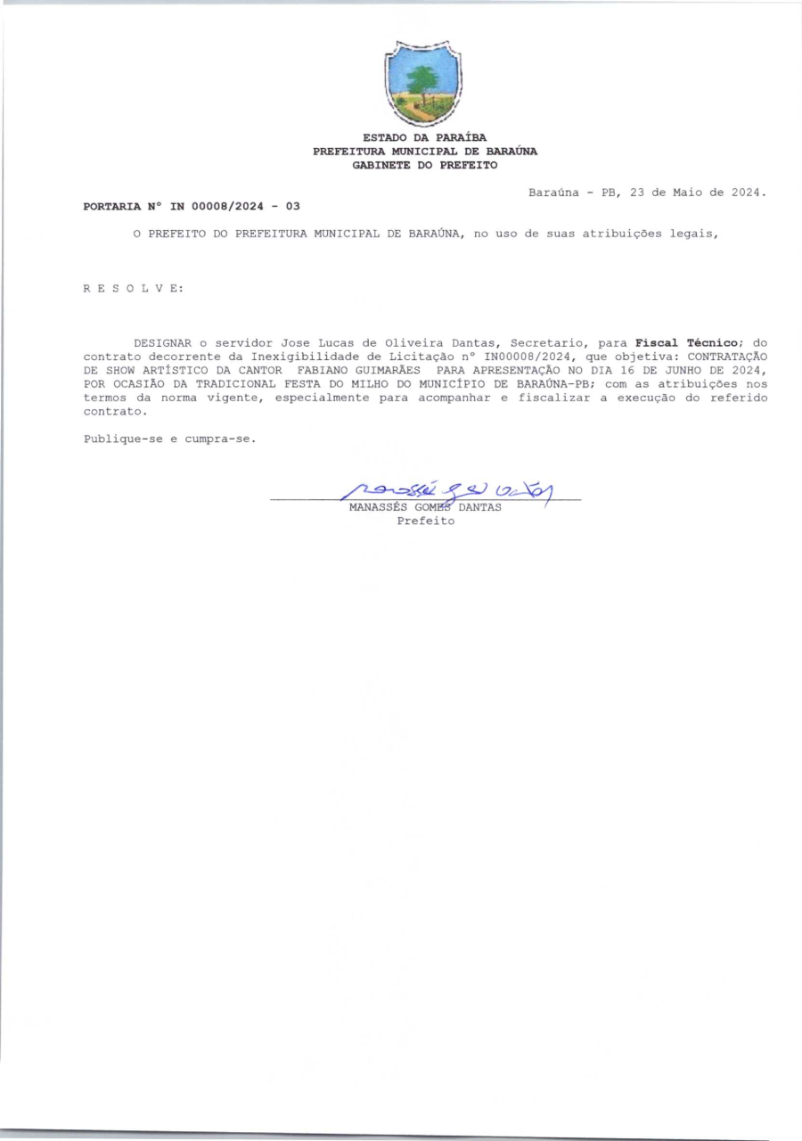 FISCAL CONTRATO – INEXIGIBILIDADE 008/2024